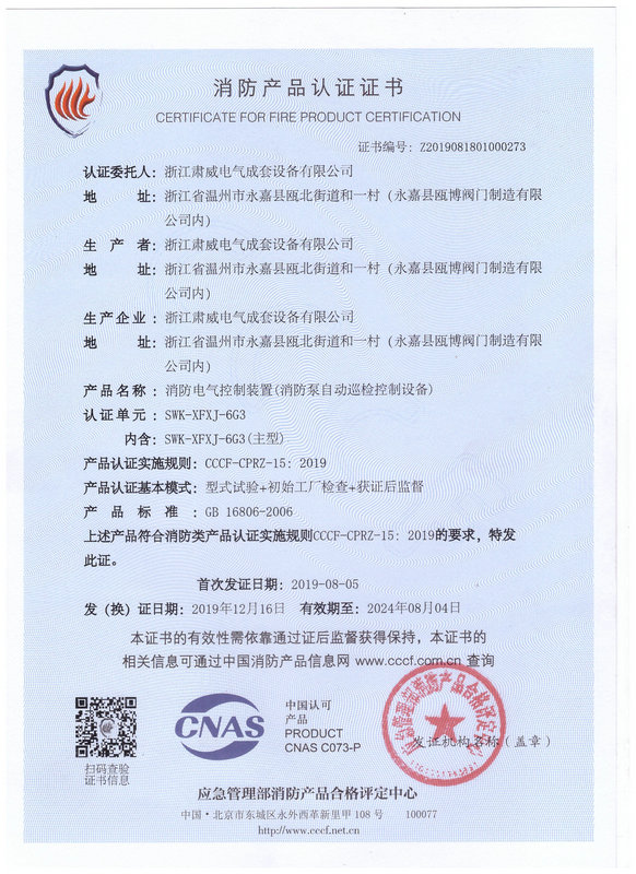 浙江肅威電氣成套設備有限公司座落于聞名遐邇的“泵閥之鄉”所在地——甌北鎮,肅威電氣是一家專業從事智能消防產品設備研發、生產、銷售、服務、改造于一體的科技型企業。主要產品有:巡檢柜、消防巡檢柜、水泵巡檢柜、消防泵巡檢柜、消防泵控制柜、EPS消防應急電源、消防電源監控設備、消防設備電源監控系統等消防電氣產品。